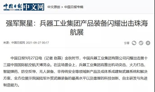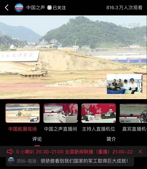 央視《新聞聯(lián)播》關(guān)注航展公眾日中國兵器館情況