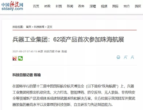 9月28日-10月3日,第十三屆中國國際航空航天博覽會在廣東珠海舉行,中國兵器工業(yè)集團(tuán)有限公司作為主辦單位閃耀亮相,推出裝甲突擊、火力打擊、智能彈藥、防空反導(dǎo)、無人裝備、非傳統(tǒng)安全、軍工軍技合作等領(lǐng)域新產(chǎn)品及成體系成建制武器系統(tǒng)和解決方案,全方位展示我國陸軍外貿(mào)武器裝備的最高水平以及雄厚的科技創(chuàng)新、自主研發(fā)與先進(jìn)制造能力,受到廣泛關(guān)注。