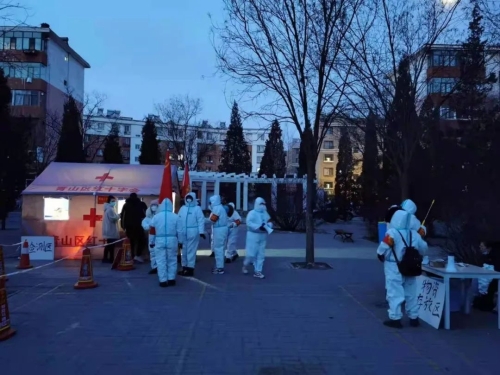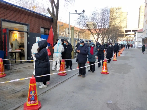 當(dāng)前,內(nèi)蒙古自治區(qū)疫情防控形勢依然嚴(yán)峻,包頭市中風(fēng)險地區(qū)已達(dá)7個。面對疫情,中國兵器工業(yè)集團(tuán)有限公司駐包頭單位積極行動,支援當(dāng)?shù)匾咔榉揽?,共筑安全防線。 凌晨集結(jié),投身核酸檢測工作 來自一機(jī)集團(tuán)、北重集團(tuán)、材料院52所包頭事業(yè)部的共計500余名志愿者密切配合包頭市防疫部門、街道社區(qū)進(jìn)行全員核酸檢測,同時做好信息登記、維護(hù)秩序、宣傳政策等工作,確保核酸檢測全覆蓋。2月20日凌晨,在零下20度的寒風(fēng)中,志愿者全部在支援地集結(jié)到位,做好核酸檢測前的相關(guān)準(zhǔn)備。 一機(jī)集團(tuán)黨員突擊隊 志愿者們搭建臨時帳篷,用圍擋封控家屬區(qū),配合醫(yī)護(hù)人員組織居民排隊,有序進(jìn)行核酸檢測。檢測工作開始后,志愿者們用溫暖的話語安撫居民們的情緒,引導(dǎo)居民有序入場,檢測居民體溫,登記核對信息,轉(zhuǎn)運檢測樣本。為了盡可能提高檢測工作效率,志愿者在各條核酸檢測通道指導(dǎo)群眾掃碼登記,一對一幫助老人、兒童等不便使用智能手機(jī)的群眾解決困難,使其能順利進(jìn)行核酸檢測。 逐戶上門,確保應(yīng)檢盡檢 為確保所支援地區(qū)完成全員核酸檢測工作,志愿者自愿組隊,挨家挨戶上門通知,進(jìn)行人員核對,對于處在隔離期的居民以及行動不便的老人、兒童采取了入戶核酸檢測。